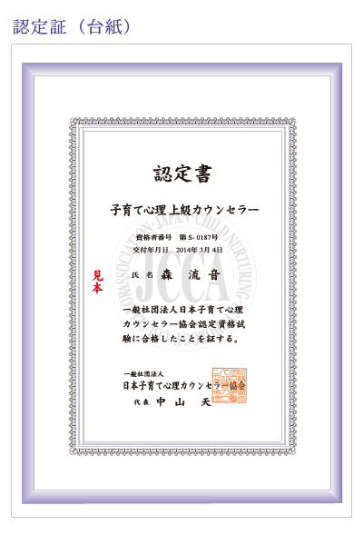 他に類のない実力ある「JCCA認定 子育て上級カウンセラー」