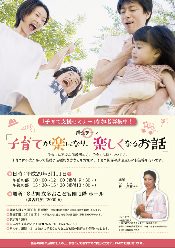 子育て全般の「子育ての極意や不安や悩みの解決法」などのセミナー講師