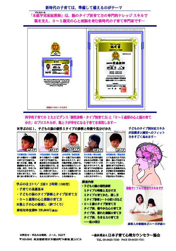 科学が進歩した今だからできる最新の子育て資格です。
